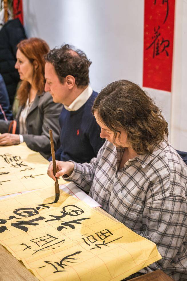 The group then boarded a special sightseeing shuttle bus for the "Hankou Historical and Cultural District," stopping at iconic landmarks such as Wuhan Tiandi and the Bagong Building to take in the century-old charm of old Hankou. In the afternoon, the experts observed an intangible cultural heritage tea ceremony performance and practiced writing the Chinese character "福" (fu, meaning "fortune") with brush pens, savoring traditional Chinese New Year customs amid the fragrance of tea and the elegance of ink. Guided by a national-level intangible cultural heritage inheritor, the delegation also visited the National Lacquer Art Space, where they tried their hand at crafting lacquered gourds. Some experts even kept their self-made intangible cultural heritage artworks as souvenirs. As the event concluded, the experts sampled local specialties such as Hongshan Cai Tai (a type of Brassica) and lotus root soup, delving deeper into the unique culinary culture of the Chu-Han region.