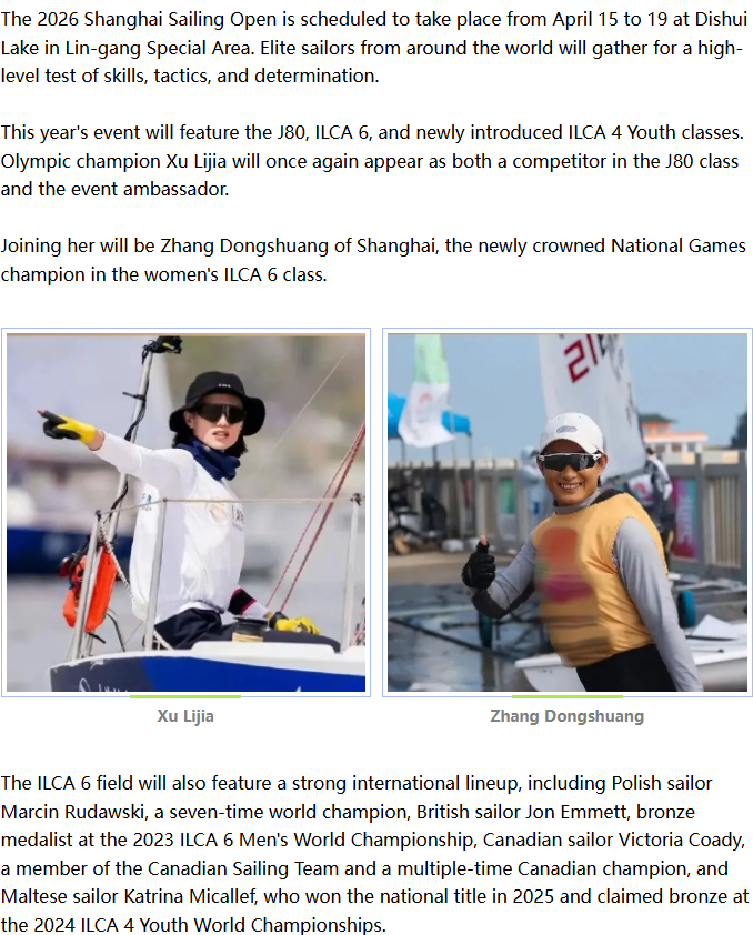 2026 Shanghai Sailing Open set for April