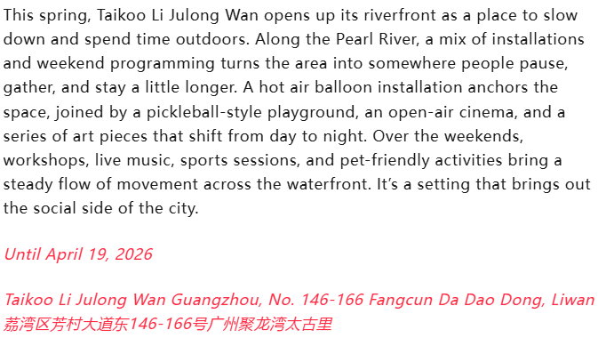 Park Talk: Spring Season at Taikoo Li Julong Wan
